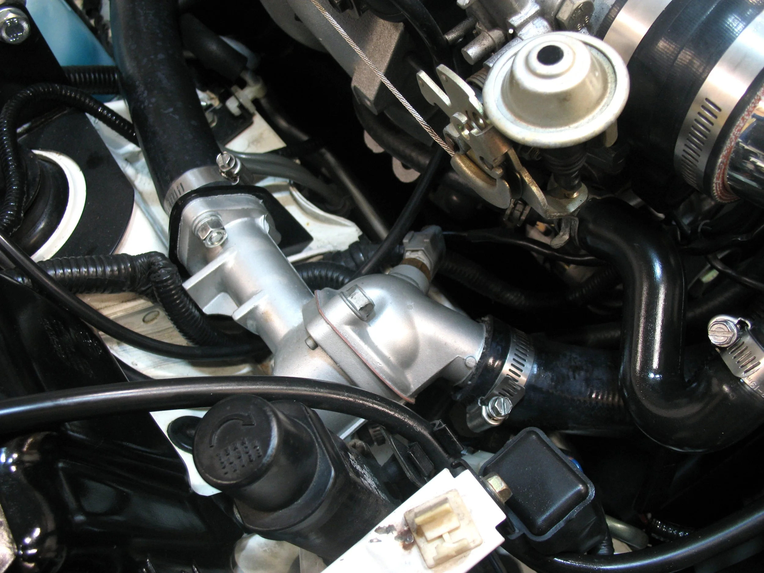 As with many higher horsepower arrangements, heat is an major problem. Stan solved this by using a smaller radiator designed for a Honda Civic, placed next to a WRX STI intercooler, rotated 90 degrees. From the front of the car, it is not apparent that this is a turbo car, as would be the case if the intercooler were placed forward of the radiator. While putting a smaller radiator would not be the apparent solution to heating problems, it works because there is nothing in front of it to disrupt the flow of air through it. Better airflow makes up for the difference in size.