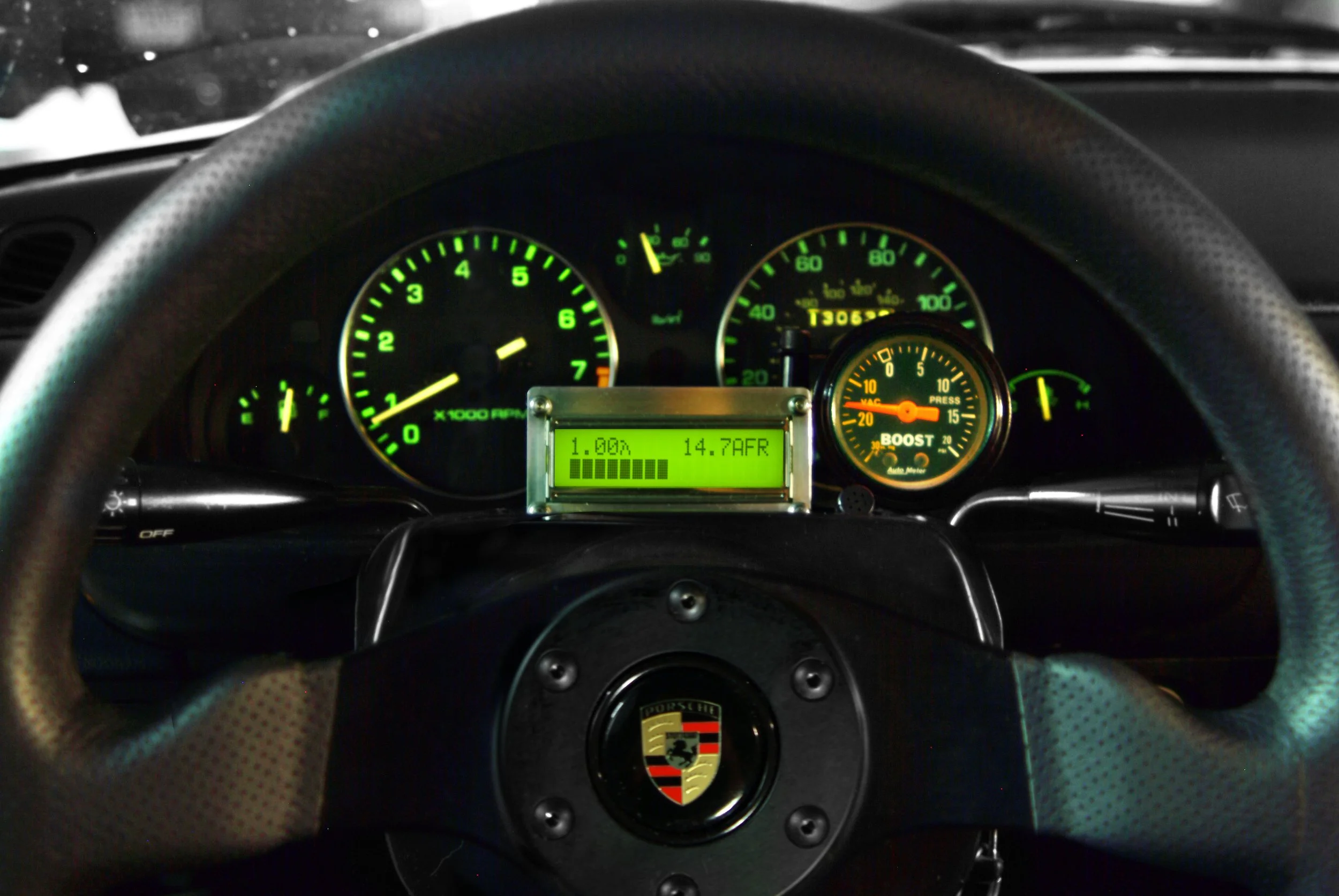 Stan has kept the interior as original as possible. There is a display for the wideband O2 sensor, which Stan has integrated into the on board Innovate LM-1. It is installed in a steering column mounted device which he designed and fabricated. Stan is not a fan of pillar-mounted gauges, so he wanted everything to be within the standard gauge area. The rest of the dash is standard, as are the cloth seats. "The stock seats are very comfortable, despite being slightly faded, so I kept those." He does have aftermarket speakers installed in the rear deck behind the seats. And the stereo is more than adequate to entertain whilst driving. With all of the wonderfulness under the hood, the sound system is a bit superfluous. It must be noted that the installation is on par with all of the other work Stan has put into the car.